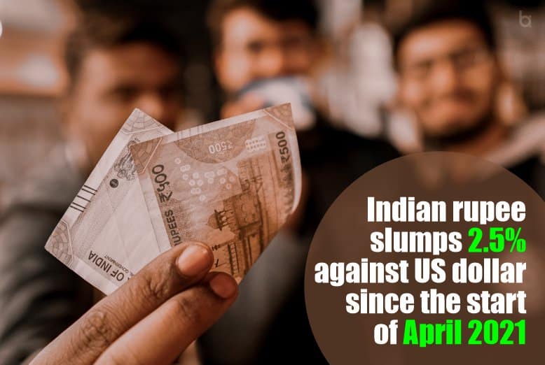 Indian Rupee Slumps 2.5% Against US Dollar Since the Start of April 2021